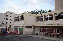 The Armenian school in Larnaca, as of 1972 called "Nareg", after Saint Krikor Naregatsi, is located on 21, Armenian church street in central Larnaca, next to the Sourp Stepanos church. The current building was built between 1993-1995 by the Technical Services of the Ministry of Education and was inaugurated on 18 May 1996 by the then President of Cyprus Glafcos Clerides.[1] Currently, the school has about 25 students. As all other Nareg Schools (Nicosia, Larnaca, Limassol), it is under a single principal, as of 2009 Vera Tahmazian, and under the tutelage of the Nareg Armenian Schools Committee.