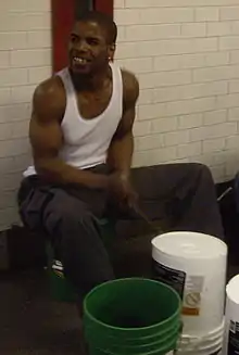 Larry Wright (born c. 1975) is a well-known New York City street performer.[1][2] He is credited as the first major drummer to use five gallon plastic buckets instead of a normal drum kit.[3] He uses his foot to lift the bucket changing the sound patterns.