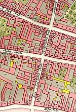 The southern part of the street has existed since at least 1388. It received its current name in around 1460 when a Laurids Bjørnson (Lars Bjørn) owned a property in the street.[1] The street was later extended to Sankt Peders Stræde. The section from Vestergade to Studiestræde was initially called Store Larsbjørnsstræde (Great Larsbjørnsstræde) while the section from Studiestræde to Sankt Peders Stræde was called Lille Larsbjørnsstræde (Little Larsbjørnsstræde).[2]