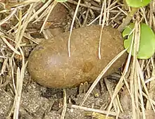 The caterpillar pupates on the ground inside a silken cocoon, the exterior of which is hard and yellowish, and resembles an acorn, hence the moth's name.[5][6][7] Eggar is an obsolete word relating to the shape of the cocoon.[12]