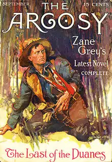 Last of the Duanes is the original version of The Lone Star Ranger. Originally written in 1913, it was rejected by Munsey's Magazine as too violent. In the meantime, Grey wrote and published another manuscript titled Rangers of the Lone Star early in 1914; later that year, Grey sold the original story to The Argosy. Publishers combined the two serials into The Lone Star Ranger, the first of Grey's works to top a best-seller list.[1]