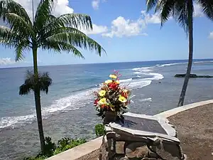 Gravestone of Laulu Fetauimalemau Mata'afa at Lotofaga overlooking the south coast of Upolu island, Samoa
