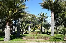 Within the park are numerous horticulturally important cold climate trees Stephens imported from other countries. Several of these have been identified in the National Trust of Australia's Significant Tree Register; an Oak (Lithocarpus spp), Mori Oak (Quercus morii), a Bristle-toothed Oak (Quercus acutissima), an English Oak (Quercus robur), and an avenue of Chilean Wine Palms (Jubaea chilensis). All of these trees are identified as regionally important.[66] Laurel Bank Park is also listed on the Australian Government's Directory of Australian Botanic Gardens, along with Toowoomba's Queens Park and Botanic Gardens.[67][1]