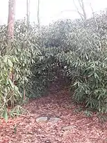 Except for climbs out of river valleys at its southwestern and northeastern ends, the trail is relatively level and appropriate for winter uses such as cross-country skiing and snowshoeing.[2] The trail travels through Fayette, Somerset, Westmoreland, and Cambria Counties, usually alongside county lines that follow the ridgetops.[3] Some of the trail is within the boundaries of various discontiguous tracts of Laurel Ridge State Park. It also traverses several other nearby state parks, plus tracts of Forbes State Forest, various Pennsylvania State Game Lands, and a few tracts of private property.[1] The trail is marked with yellow blazes, and several connecting trails to parking or shelters are marked with blue blazes. Parking lots at highway crossings serve as intermediate trailheads and some have drinking water.[3]
