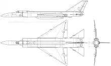 - Powerplant: 2 × Lyulka AL-7F-1 afterburning turbojet engines, 73.55 kN (16,535 lbf) thrust each dry, 98.06 kN (22,045 lbf) with afterburner