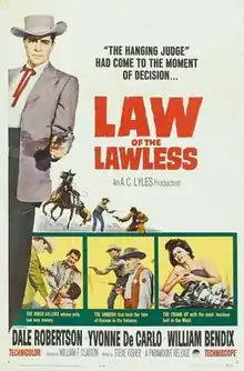 Law of the Lawless is a 1964 American Techniscope Western film directed by William F. Claxton, produced by A.C. Lyles, and starring Dale Robertson, Yvonne De Carlo and William Bendix. The supporting cast features Lon Chaney Jr., Kent Taylor, Barton MacLane, John Agar, Richard Arlen, Bruce Cabot and Don "Red" Barry. This was the first of eight westerns Chaney made for A. C. Lyles between 1964 and 1968.[1]