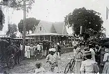 In 1903 former seamen from Curacao began building the track from Paramaribo to Republiek; this section opened in 1905. They completed the section to Dam at the Sara Creek in 1912. The rail track was by then 173 kilometres (107+1⁄2 mi) long and had cost 8.5 million Surinamese guilder. A 300-metre-long (330 yd) aerial cable car crossed the Suriname River, as building a bridge was considered too expensive.[6] The passengers had to disembark the train at the Cable station (Kabelstation) and cross the river in a simple gondola lift. On the other side of the river, another train waited to bring them to the terminus at the Sara Creek.[7]
