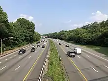 The New Jersey Turnpike is the most prominent highway passing through Lawnside.[89] However, there are no exits within the borough, with the nearest ones being Exit 3 in Runnemede/Bellmawr and Exit 4 in Mount Laurel.[90] Interstate 295 also passes through Lawnside, with one partial interchange at Warwick Road.[91] U.S. Route 30 (White Horse Pike) runs through the borough.[92]