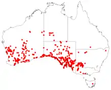 It grows on clayey soils, and is found fringing saltlakes and salty depressions.[5]