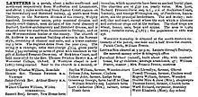 In 1795 the estates comprising the lordships of Heath (grid reference SO556626), a further Laysters' settlement of the time, and Woonton, had been purchased by "… Hulton the celebrated antiquarian and historian". His descendants in the 1850s resided on the property.[8][9][10][11][12]