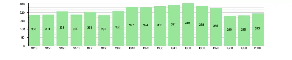 Le Cerneux-Péquignot has a population (as of December 2020) of 313.[7] As of 2008, 2.9% of the population are resident foreign nationals.[8] Over the last 10 years (2000–2010 ) the population has changed at a rate of 2.5%. It has changed at a rate of -0.9% due to migration and at a rate of 5% due to births and deaths.[9]