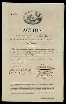 In a letter from his son, Count Gérard Le Grelle, addressed to Father Marcel Bouix SJ (1806-1889),[14] the story is told that Joseph Le Grelle, having contracted a serious illness, was cured by Anne de Saint-Barthélémy.[15] Joseph J. Le Grelle was later taken hostage and brought to Paris in 1794. He was not released until after the fall of Robespierre. Until the foundation of the National Bank of Belgium in 1850, the Joseph J. Le Grelle Bank was among the few private banks to issue banknotes. Upon Joseph J. Le Grelle's death, the bank was taken over by his widow, Maria Theresia Cambier, and his sons Gérard (1793-1871), Jean (1796-1872), and Henri Joseph (1798-1872). The Joseph J. Le Grelle Bank was an important indirect financier of the Belgian Colonization Company in Guatemala, an ill-prepared expedition that ended in failure. In 1854, faced with the Colonization Company's inability to repay one of its debtors, the bank found itself the owner of 10,640 hectares in Guatemala. The family had lost track of its land since 7 October 1940 but has now taken steps to recover it by hiring an attorney in 2020 to look into the matter. The Joseph J. Le Grelle bank merged through the Bank of Antwerp and the General Bank Corporation[16] with Fortis Bank in 1962.[17][18]