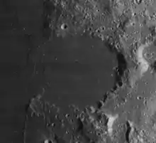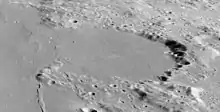 Le Monnier is the remnant of a lunar impact crater that has been partly inundated by lava flows. It was named after French astronomer Pierre Charles Le Monnier.[1] It is located on the eastern edge of Mare Serenitatis, and the western part of the rim is missing so that it now forms a large bay. To the north is the crater Chacornac.