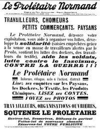 ![]() Communist Party poster, calling on workers and trade unions to support Le Prolétaire normand | |