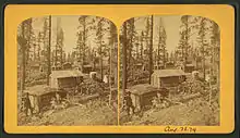"At the foot of Chestnut street, a little distance from the Leadville Smeltering Company's works, in an acre plot of ground unfenced, and with the carbonate-like earth thrown up into little heaps. On a closer inspection, the stranger will see that many of these carbonate mounds are marked by pieces of boards, slabs and sticks. Two or three have marble slabs and as many more are marked by pine [wood] boards painted in imitation of marble. ... [It was a] barren red clay-colored plot [with] no flowery lawns, spouting fountains, shady nooks, grassy plats, nor artistically carved marble. ... A worse or less inviting spot for the repose of the dead could not have been found within the environs of our city. Here all the vast transportation of a great mining camp passes in daily bustle and confusionis, and the sleep of our dead forever disturbed by the oaths and the 'black snake' of the irreverent freighter [train]."[7]