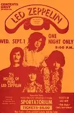 ![]() Poster for Led Zeppelin's concert at the Hollywood Sportatorium, used to help promote its 1971 North American tour | |