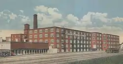 The Lee Woodard and Sons Building is a large four-story brick factory. The building has tripled sets of four-over-four double hung sash windows in bowed arch brick openings. The only details on the exterior are brick pilasters at two bay intervals and a simple dentilated brick corniceline. A c. 1925 addition is ten bays wide and has the same basic window pattern, but with windows in trabeated brick openings.[3]