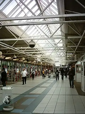The station was rebuilt reopening on 30 September 1963 with four curved platforms.[2] In 1990, Vicar Lane bus station closed and West Yorkshire Road Car Company buses began using the main bus station. It was again rebuilt, being officially reopened on 25 March 1996 when National Express relocated to the site. Wellington Street coach station was closed when the new station opened.