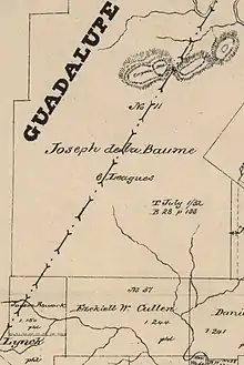 - ↑ Byrd Lockhart's Field Notes of 6 Leagues of Capote tract. Seguin, Texas: Personal Papers of Mrs. Charles E. Baer. June 14, 1830.
