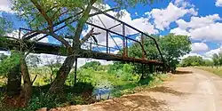 ![]() ![]() Sandies Creek Iron Rail-Bridge ca. 1899;[1] Leesville historical-marker below | |