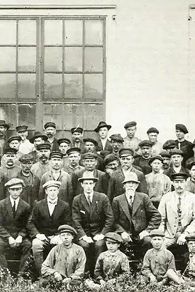 A community of workers grew around the factory. The number of workers varied according to workload. The largest mentioned number of workers was over 600. Many of the workers lived in their own cottages or lodged in nearby houses. Initially there were seven houses with factory apartments, and later more were built. As was common at the time, the factory took care of the workers and their families. The workers had a sickness fund, library and reading room. The workers' children could go to school owned by the company. Also freetime activities flourished: the workers had a choir, brass quartet and gymnastics group.[2]