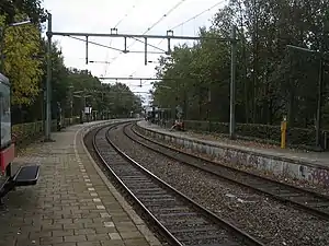The station features 2 platforms on either side of a viaduct. These have a high and a low platform, with RandstadRail 3 and RandstadRail 4 using the lower platforms, and line E using the higher platforms.