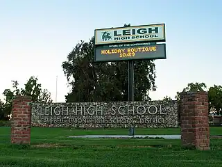 Leigh High School is a secondary school located in the West San Jose region of San Jose, California, United States. Opening in September 1962, it was the fifth school established in the Campbell Union High School District. The school has twice been given the California Distinguished School award, in 1999 and 2003.[3] As of 2020, the school's enrollment was 1809 students. The school colors are gold (yellow) and pine green, and its mascot is the Longhorn.