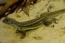 Leiolepis ngovantrii (Vietnamese: Nhông cát trinh sản, meaning "parthenogenic sand iguana") is a species of lizard that is all-female, reproducing clonally.[2][3][4] The species is named after Vietnamese herpetologist Ngo Van Tri (born 1969)[3][5] of the Vietnam Academy of Science and Technology, and is believed to be related to two other Vietnamese lizard species, Leiolepis guttata and Leiolepis guentherpetersi.[6] This species is one of four unisexual Leiolepis agamospecies. However, the genus Leiolepis has five different bisexual species.[7] This unisexuality is possibly due to mutation and hybridization.[8]