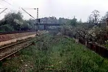 On the left are the tracks of the Engelsdorf–Leipzig-Stötteritz line at Anger junction, which has been electrified since 1961, ahead is Stötteritz; to the right in the middle of the picture is the track to the Eilenburger Bahnhof (Eilenburg station), which still existed at the time. The Leipzig Hbf–Leipzig-Connewitz railway ran over the bridge, which has been dismantled in the meantime. (May 1983)