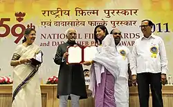 Tonthoi receiving the Best Supporting Actress Award at the 59th National Film Awards function