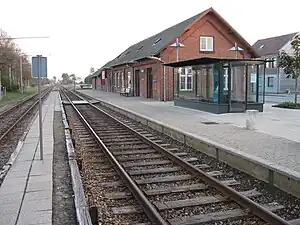 The station opened on 8 August 1875 as the section from Varde to Ringkøbing of the new Esbjerg–Struer railway line opened.[3] It has been unstaffed since 1970.[3]