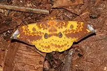 Small oriental genus consisting of 8 orange-marked yellow species, reviewed by Nassig & Holloway (in press). Diagnostic features are: uniformity, rather than asymmetry, of the rings of the ocelli; an undivided, dorsally domed uncus in the male genitalia; a short broad aedeagus with two apical fields of scobination, and a densely and robustly scobinate apex to the conical vesica; strong pouches lateral to the ostium in the female genitalia; a signum consisting of a single spine in the bursa copulatrix.