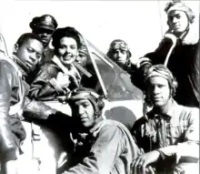 Lena Horne posing with the Tuskegee Airmen in Tuskegee, Alabama during World War II.[N 1]