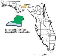 Leon County, Florida displaying Miocene shoreline according to the Florida Geologic Survey.