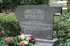 Leon Kasman, pseudonyms "Adam," "Bolek," "Janowski," "Zygmunt"[1] (born 28 October 1905 in Łódź; died 12 July 1984 in Warsaw) was a Polish communist journalist and politician of Jewish descent.[2][3] Head of the propaganda and agitation department of the Central Committee of the Polish Workers' Party.[4] He was a first editor-in-chief of the Trybuna Ludu daily, deputy to the Sejm of the Polish People's Republic. As a result of the conflicts within the communist party, Kasman resigned from this function in December 1953.[5] He was among the “Puławianie"[6] faction in PZPR. Leon Kasman died in 1984 and was buried at the Powązki Military Cemetery in Warsaw.