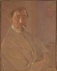 He painted in a variety of genres; including portraits, landscapes and interior scenes. Although he lived in France, he apparently never became involved in the various artistic schools that developed there.[2] His pastel portraits, however, were inspired by Luminist techniques and were designed to give an impression of vagueness. Among those he portrayed were the French composers and musicians Alfred Cortot, Paul Dukas, Reynaldo Hahn and Ferruccio Busoni. His portraits of Polish notables included Wanda Landowska, Ignacy Jan Paderewski, Józef Hofmann, Stanisław Przybyszewski and Jan Rosen,