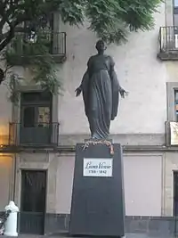 Statue of Leona Vicario located at a plaza on the corner of Republica de Brasil and Republica de Nicaragua in the historic center of Mexico City.