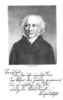 Leonhard Wächter (25 November 1762 — 11 February 1837) was German writer and historian who often published under the pseudonym Veit Weber.[1] His most well-known work of fiction was Sagen der Vorzeit ('Legends of the Past'), a seven volume idealized account of Germany in the middle ages. The work influenced several 18th- and early 19th-century Gothic novelists in both Britain and France.[2][3][4] According to the Germanist James Taft Hatfield, it also had an influence on Goethe's Poem "Im Ernsten Beinhaus".[5]
