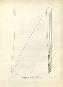 - 1 2 Labillardiere, J.J.H. de (1805). "Lepidosperma filiformis". Novae Hollandiae Plantarum Specimen. 1 (2–4): 17. , t. 15