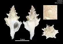 | Shell of Leptotrophon surprisensis (specimen at MNHN, Paris) | |