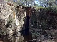 The Lerderderg River diversion tunnel, known as The Tunnel, is located on the Lerderderg River approximately 25 km north-west of Bacchus Marsh, Victoria, Australia. The river flows around a spur in a horseshoe bend. The tunnel was driven through the spur diverting the river and allowing the exposed river bed to be sluiced for alluvial gold.[1]