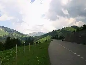 The north side is substantially flatter, passing on the south shore of the Lac de l'Hongrin. This part of the road is open to private motorized vehicles only in summer. Near La Lécherette, the road meets the pass road that crosses the Col des Mosses.