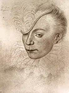 Les Mignons (from mignon, French for "the darlings" or "the dainty ones") was a term used by polemicists in the contentious atmosphere of the French Wars of Religion and taken up by the people of Paris, to designate the favourites of Henry III of France, from his return from Poland to reign in France in 1574, to his assassination in 1589, a disastrous end to which the perception of effeminate weakness contributed.[1] The mignons were frivolous and fashionable young men, to whom public malignity attributed heterodox sexuality, rumors that some historians have found to be a factor in the disintegration of the late Valois monarchy.