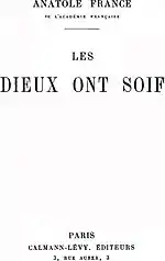The Gods Are Athirst (French: Les dieux ont soif, also translated as The Gods Are Thirsty or The Gods Will Have Blood) is a 1912 novel by Anatole France. It is set in Paris in 1793–1794, closely tied to specific events of the French Revolution.