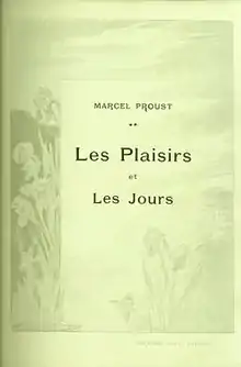 Les Plaisirs et les Jours is a collection of prose poems and novellas by Marcel Proust. It was first published in 1896 by Calmann-Lévy, and was Proust’s first publication.[1]
