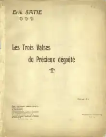Les trois valses distinguées du précieux dégoûté (The Three Distinguished Waltzes of a Jaded Dandy) is a 1914 piano composition by Erik Satie. The shortest of his humoristic keyboard suites of the 1910s, it features what author James Harding called "the most baroque verbal scaffolding Satie ever erected around his music".[1] A performance lasts around 3 minutes.