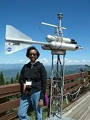Lesley-Ann L. Dupigny-Giroux standing in front of a NASA weather station