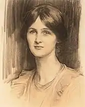 Soon after her return from Paris, Angela Mackail met James Campbell McInnes (1874–1945), a professional singer, and married him in 1911.[7] Their first son was born in January 1912 and named Graham after McInnes's former lover, Graham Peel.[8] Their second son was the novelist Colin MacInnes.[9] A third child, Mary, was born and died in 1917, and Angela then divorced her husband for adultery, in a blaze of publicity.[10] In December 1918, Angela married George Lancelot Allnut Thirkell (1890–c. 1940),[11] an engineer of her own age originally from Tasmania, and in 1920 they sailed for Australia together with her sons.[12] Their son Lancelot George Thirkell, later Comptroller of the BBC, was born there.[13] The Thirkells led a 'middle-middle-class life'[14] in Melbourne, which to Angela was all deeply unfamiliar and repugnant. So, in November 1929, Angela left her husband without warning, returning to England with Lancelot George, on the pretext of a holiday, but in fact quitting Australia for good.[15]