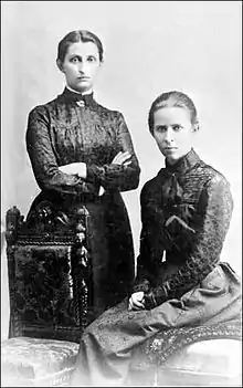 Lesya's mother, a poet, wrote poetry and short stories for children in Ukrainian. She was also active in the women's movement and published a feminist almanac.[6] Ukrainka's mother played a significant role in her upbringing. The Ukrainian language was the only language used in the household, and to enforce this practice, the children were educated by Ukrainian tutors at home, to avoid schools that taught Russian as the primary language. Ukrainka learned how to read at the age of four, and she and her brother Mykhailo could read foreign languages well enough to read literature in the original.[7]