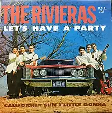 Let's Have a Party is the debut album by the American rock band the Rivieras released in 1964 by USA Records. This album contains the band's biggest hit, "California Sun", which reached number five on the Billboard Hot 100 chart.[2] The album continues the band's popular surf style, and contains covers of classic and contemporary rock and roll hits. The album's title track is a cover of Elvis Presley's "Let's Have a Party", written by Jessie Mae Robinson.